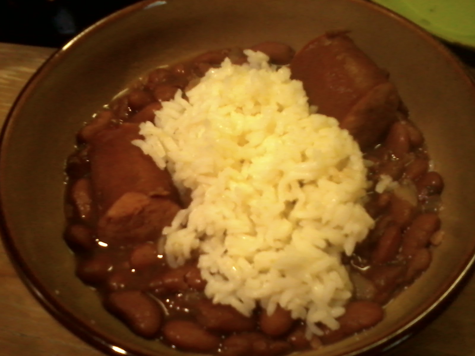 Meanwhile, prepare the rice. In a saucepan, bring water and rice to a boil. Reduce heat, cover, and simmer for 20 minutes. Serve beans over steamed white rice.